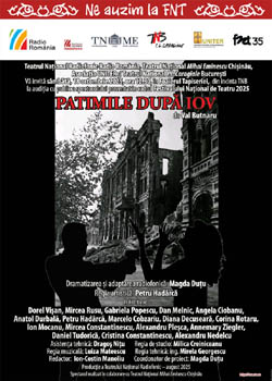 „Patimile după Iov” este o saga a unei familii de basarabeni, pe fundalul istoriei Basarabiei, îmbinare captivantă de realitate istorică și ficțiune, acoperind două dintre cele mai frământate secole prin care a trecut Basarabia, de la anexarea acestui teritoriu de către ruși, până în contemporaneitate. Scenariul radiofonic propune un personaj – martor peste timp al tuturor întâmplărilor – un călăuzitor, care ne povestește și ne lămurește totul, într-o interpretare de excepție a marelui actor Dorel Vișan, invitat de onoare la audiția de la Teatrul Național București, împreună cu alți interpreți din distribuție. Va fi, cu siguranță, o adevărată întâlnire de suflet, deoarece vor participa la audiție și actorii Teatrului Național „Mihai Eminescu” din Chișinău, prezenți în Festivalul Național de Teatru cu spectacolul „Grădina de sticlă” după Tatiana Țîbuleac (regia Petru Hadârcă).