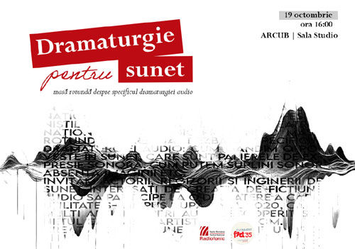 Dramaturgie pentru sunet – masă rotundă. Masa rotundă Dramaturgie pentru sunet va avea loc la ARCUB, în data de 19 octombrie 2025, ora 16.00, la Sala Studio (demisol). Invitați: dramaturgii Alina Nelega, Mihaela Michailov și Claudiu Sfirschi-Lăudat, alături de scenarista și regizoarea Ilinca Stihi, moderați de Oana Cristea Grigorescu, critic de teatru și producător de audio drama.